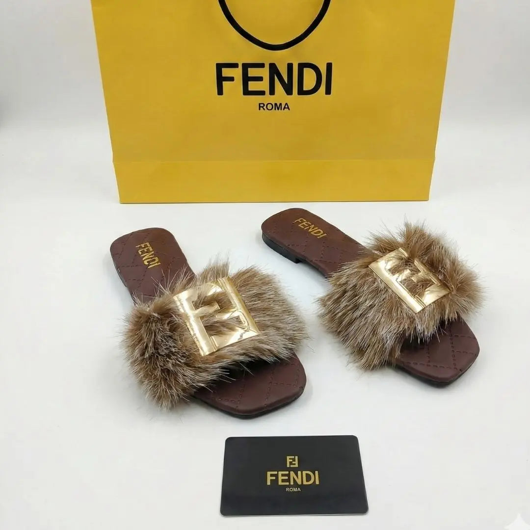Luxury fur flat slippers with stylish golden buckle, perfect for casual and chic everyday wear.