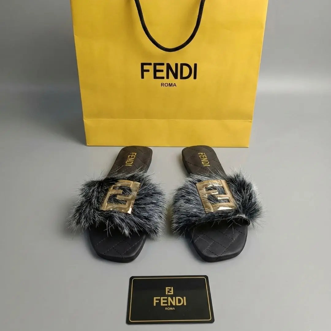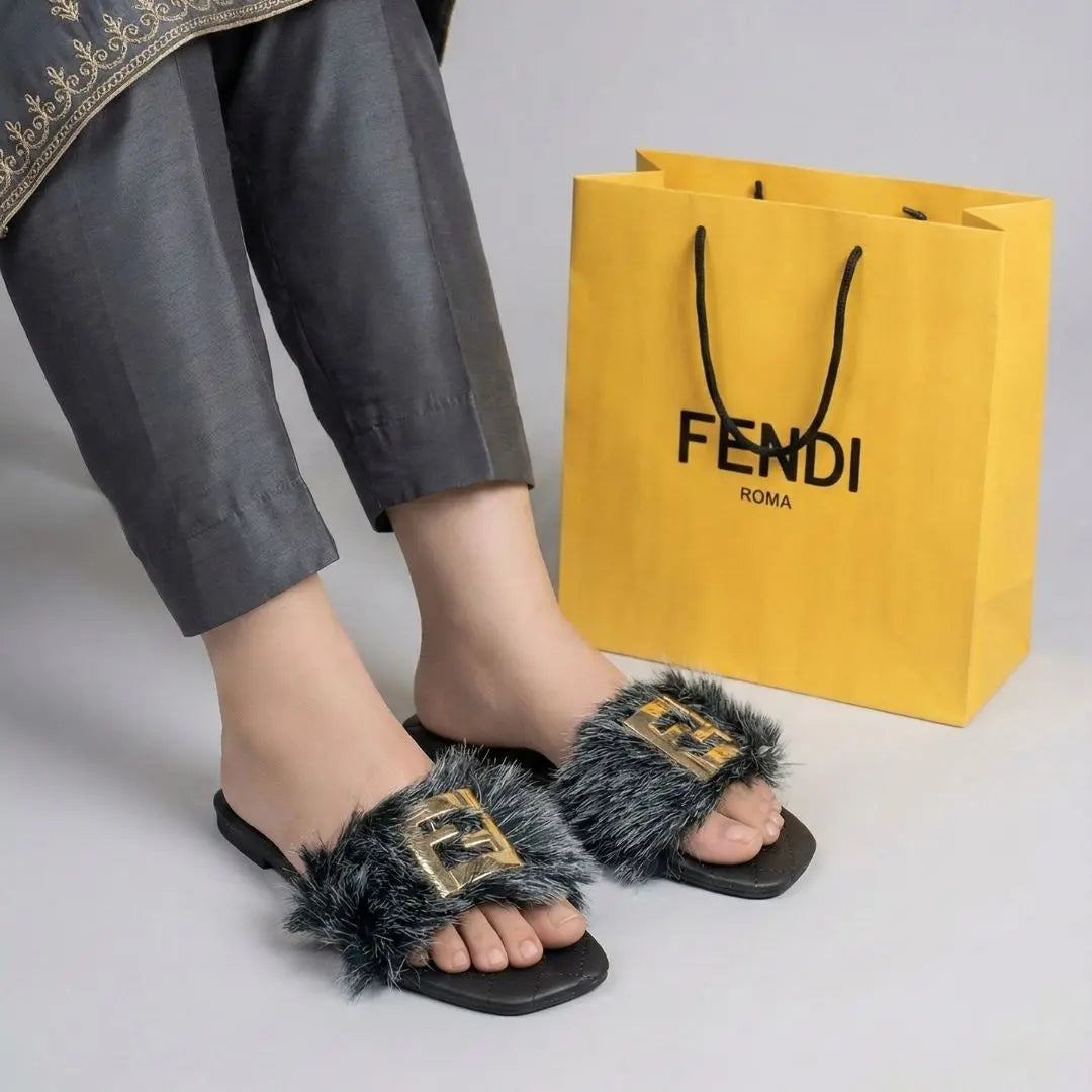 Premium black fur slides with elegant gold-tone detail. Soft, stylish, and perfect for luxury everyday wear.